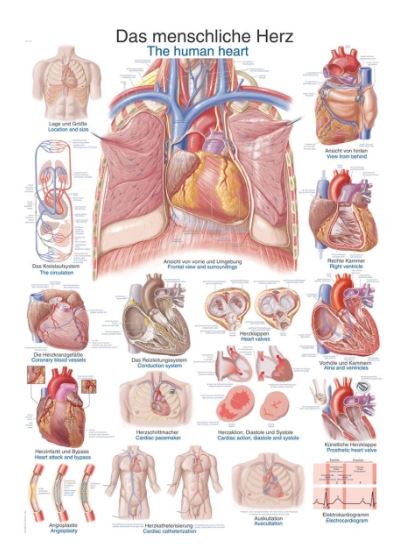 Vysoce kvalitní anatomický obraz, vyrobený z 200µ plastové fólie, včetně kovového lemování se závěsnou šňůrkou. Názvosloví v němčině, latině a angličtině.