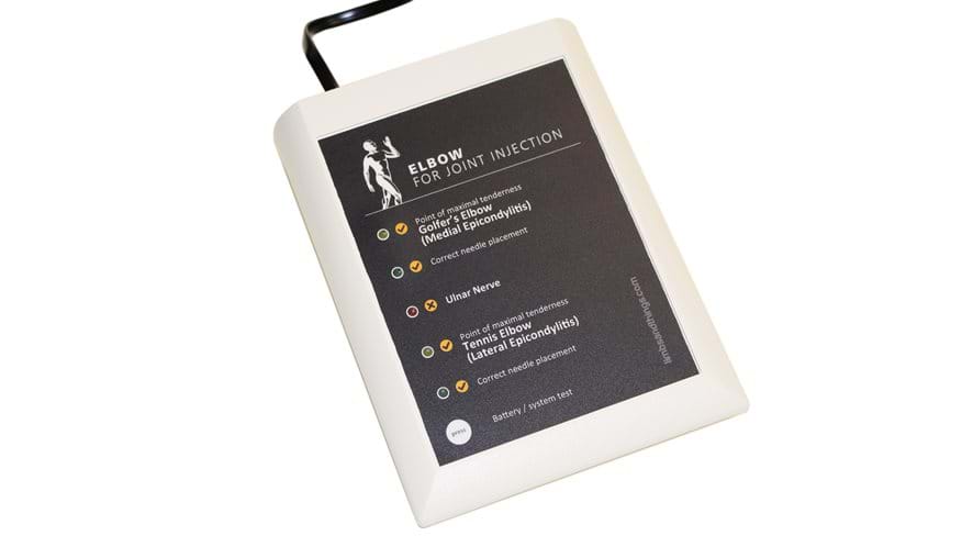 Snadno použitelná konzola pro zpětnou vazbu: LED se rozsvítí, když byla získána správná místa vpichu, byl nahmatán bod maximální citlivosti a když byl zasažen ulnární nerv
