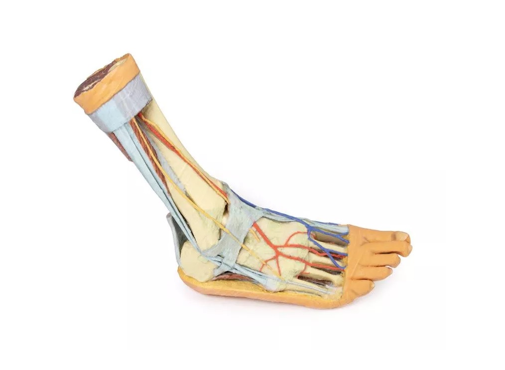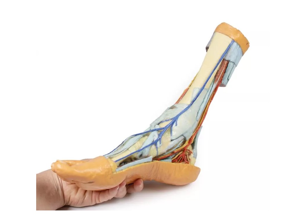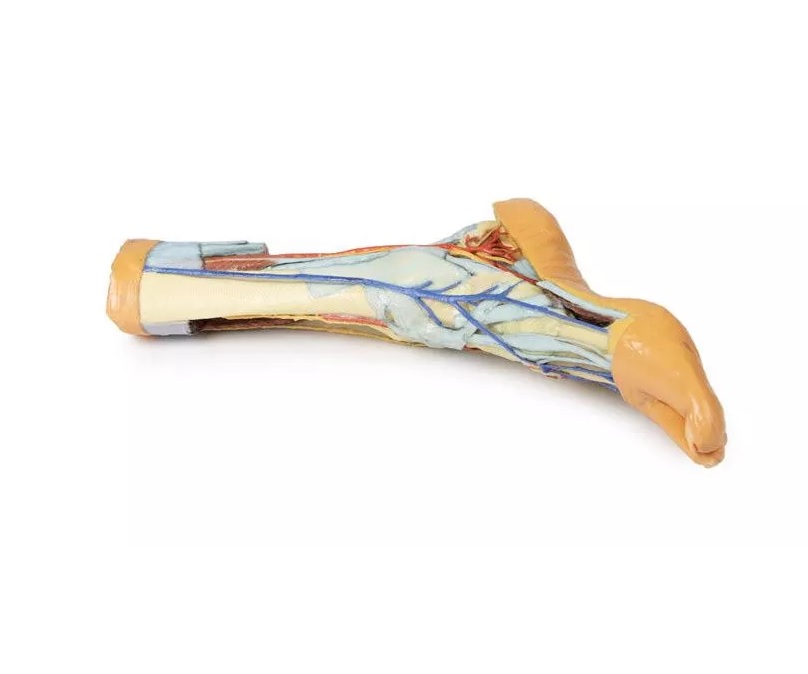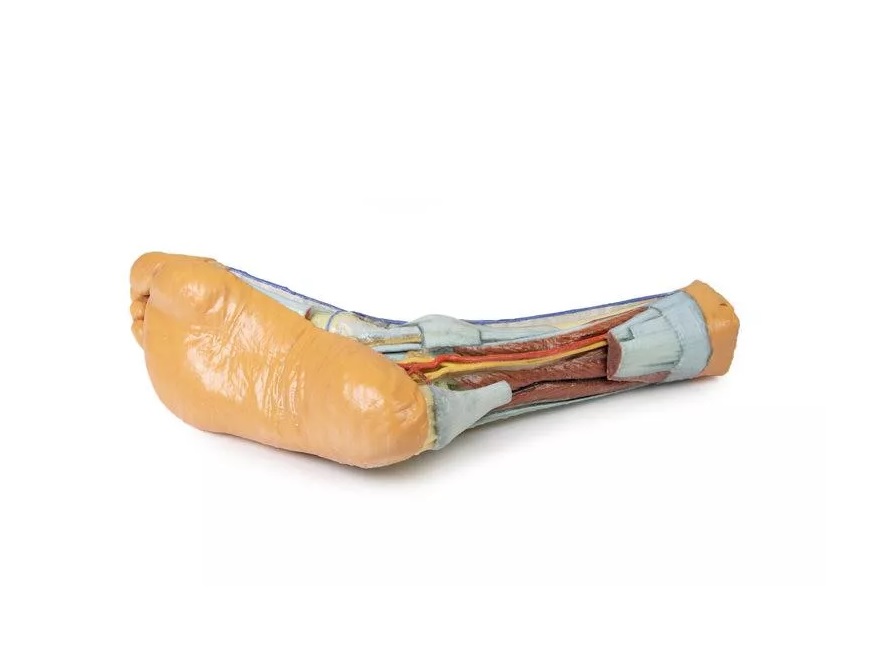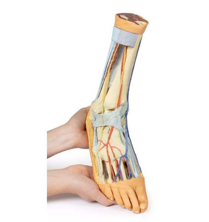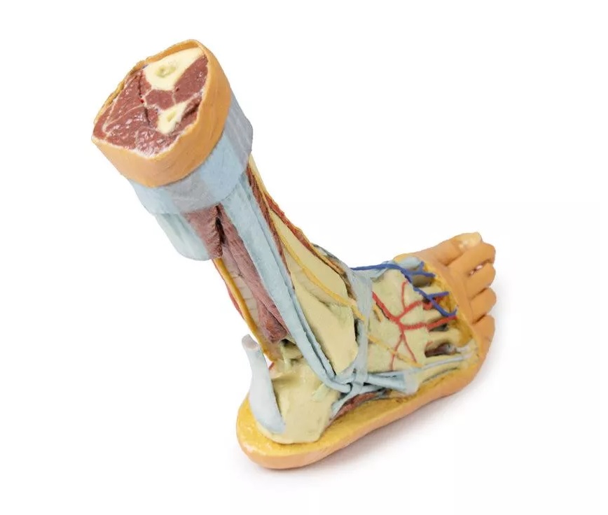 Tento 3D vytištěný model zobrazuje povrchové i hluboké struktury pravé distální dolní končetiny. Proximálně byl obnažen zadní kompartment dolní končetiny, aby bylo možné odstranit svaly triceps surae a tendocalcaneus a odhalit hluboké svaly kompartmentu (tibialis posterior, flexor digitorum longus, flexor hallucis longus).