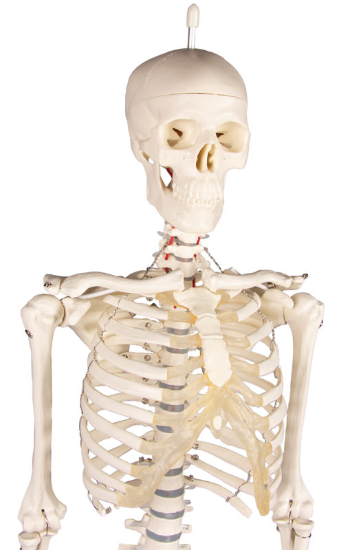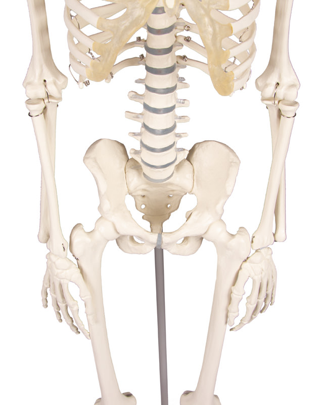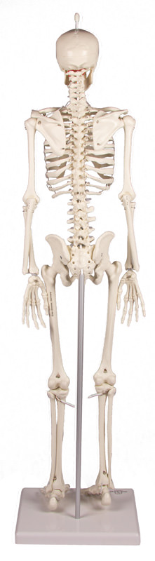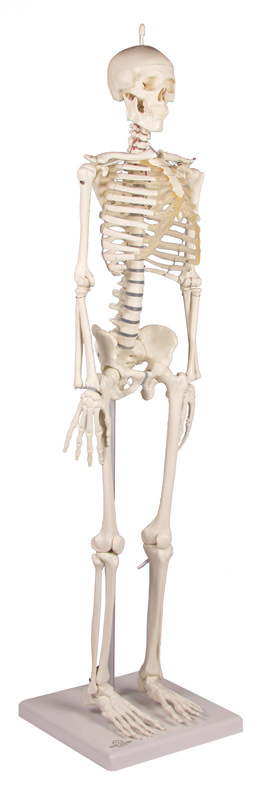 Zmenšený model lidské kostry poloviční velikosti. Paže a nohy jsou plně pohyblivé. Ramenní, kyčelní, kolenní a kotníkové klouby jsou namontovány jako pohyblivé, aby umožňovaly přirozený pohyb. Třídílná lebka i ruce a nohy jsou odnímatelné. Nohy lze oddělit v koleni a kotníku. Umístěno odnímatelném na stojanu.