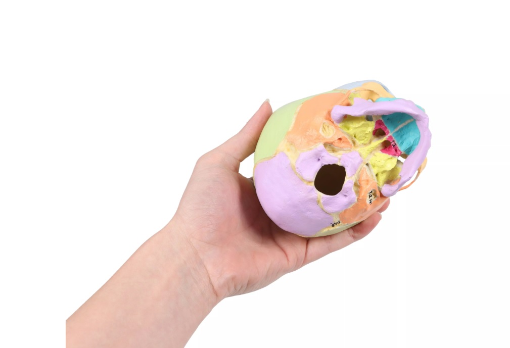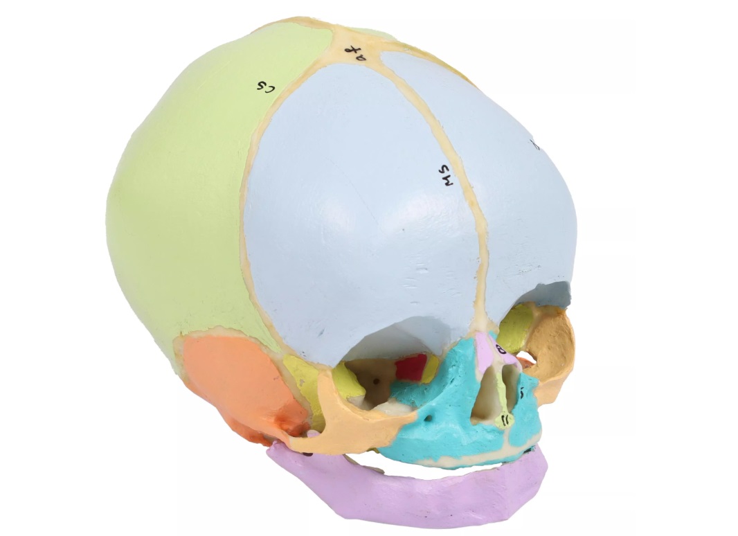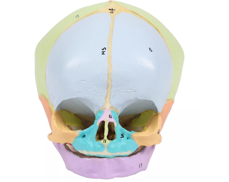 Tento realistický model lebky ve 40.týdnu těhotenství je vyroben ze speciálního materiálu podobného kosti. Jednotlivé lebeční kosti jsou zobrazeny barevně a detaily, jako jsou fontanely, švy, zevní zvukovod... jsou dobře viditelné. Jednotlivé části jsou barevně i číselně označeny pro snadnou identifikaci.