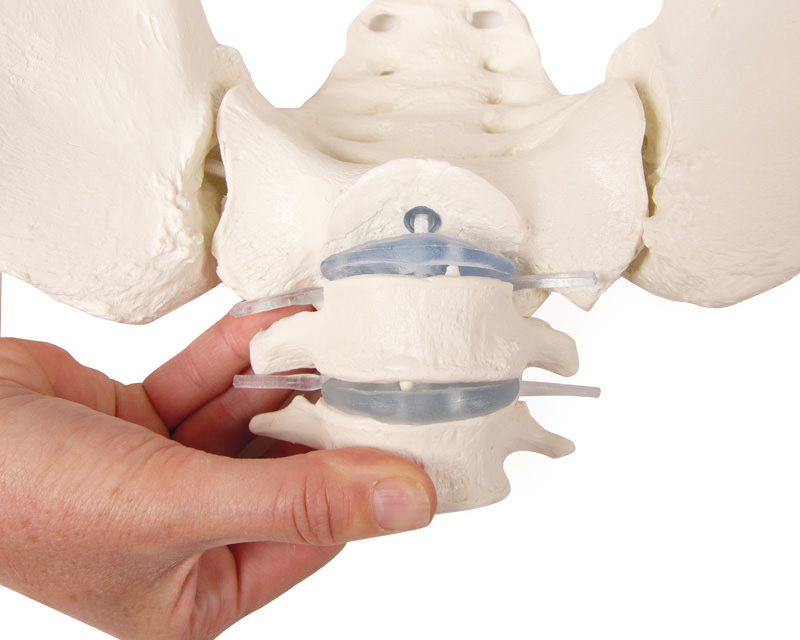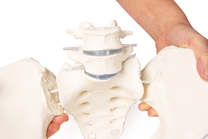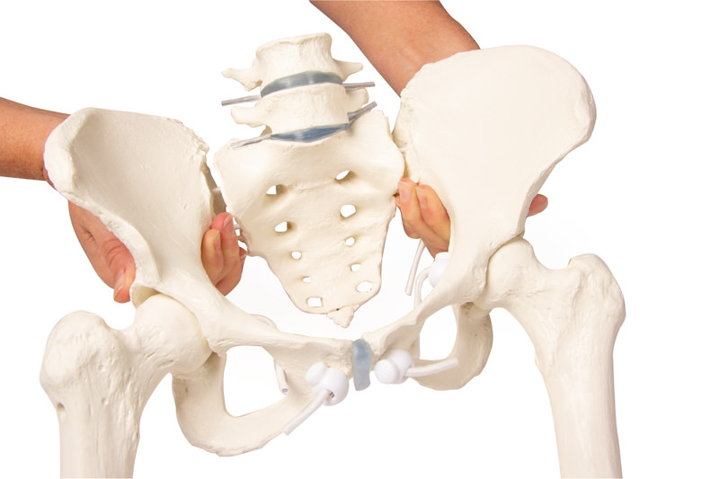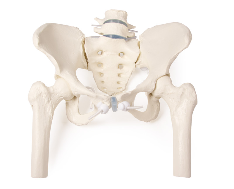 Odlitek ze skutečné pánve dospělé ženy. Panev lze snadno a rychle demontovat. Je spojována gumovými pásky, které umožňují výjimečný rozsah pohybu. Stehenní kosti jsou pohyblivé a odnímatelné.