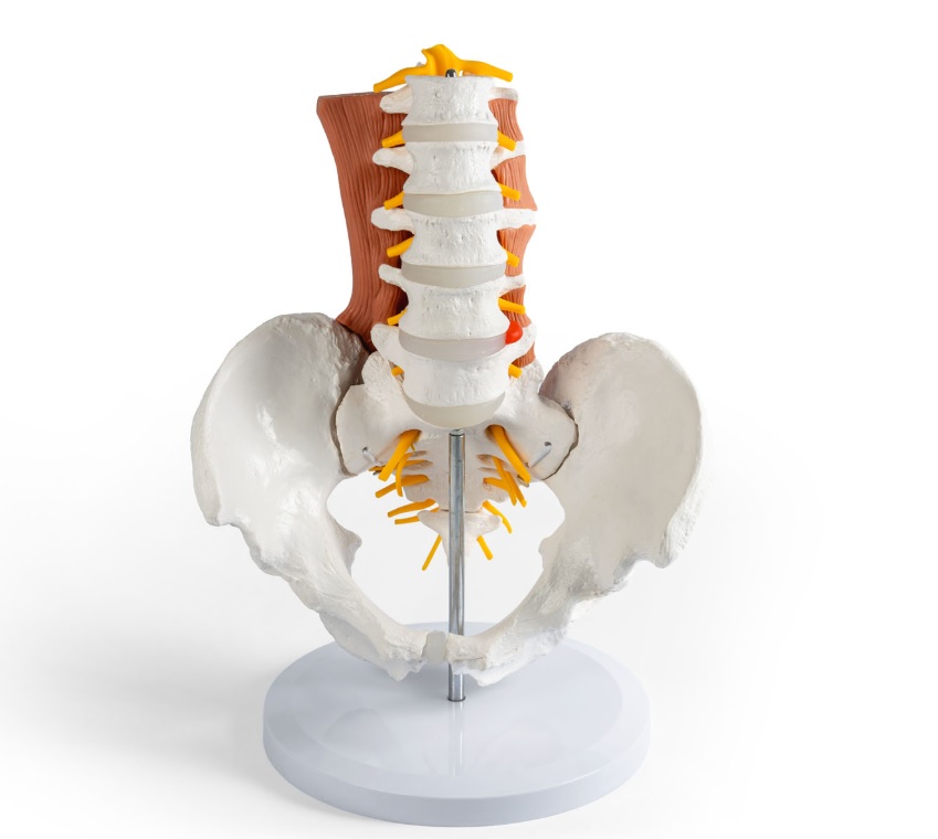 Model mužské pánve společně s bederní páteří se svaly poskytuje realistické znázornění anatomických struktur. Je ideální pro lékařské vzdělávání, fyzioterapii a ošetřovatelství.