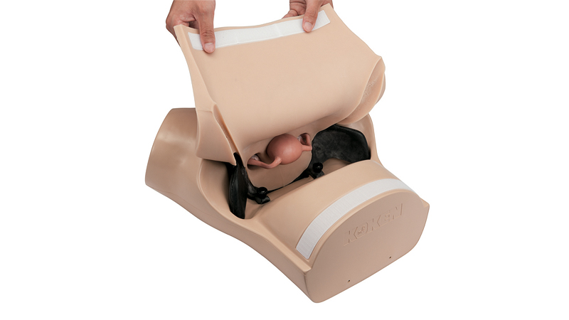 - Měkký, speciální materiál použitý pro část zevního genitálu a břišní části umožňuje realistickou simulaci bimanuálního vyšetření (vnitřní a zevní vyšetření) a rektálního vyšetření.