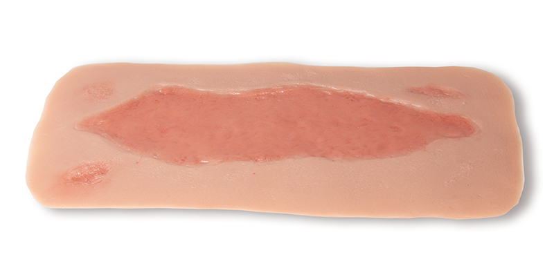 Tato samolepicí rána představuje arteriální bércový vřed, tkáňový defekt v bérci, který je důsledkem periferního arteriálního onemocnění (PAO). Příčinou je nedostatečné prokrvení a s tím související nedostatečné zásobení kyslíkem, hojení ran je zpomaleno a z jakýchkoli drobných poranění se mohou stát chronické rány. Tato imitace ukazuje tvorbu epitelové tkáně, která nakonec vede k uzavření rány po úspěšné kauzální terapii a pečlivém vyčištění rány.
