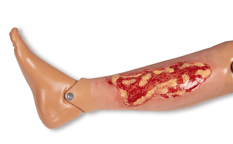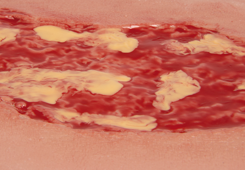 Zobrazená fáze exsudace představuje nejběžnější vředovou chorobu (60% až 80% ze všech vředových chorob) v neléčeném stavu. Fibrin a nadměrný výpotek z rány musí být během čištění odstraněny. Tato velká rána sama přilne ke kotníku nebo na dolní část končetiny. Pro delší použití může být fixována speciálním lepidlem na pokožku. Všechny materiály použité v tomto produktu jsou dermatologicky nezávadné.