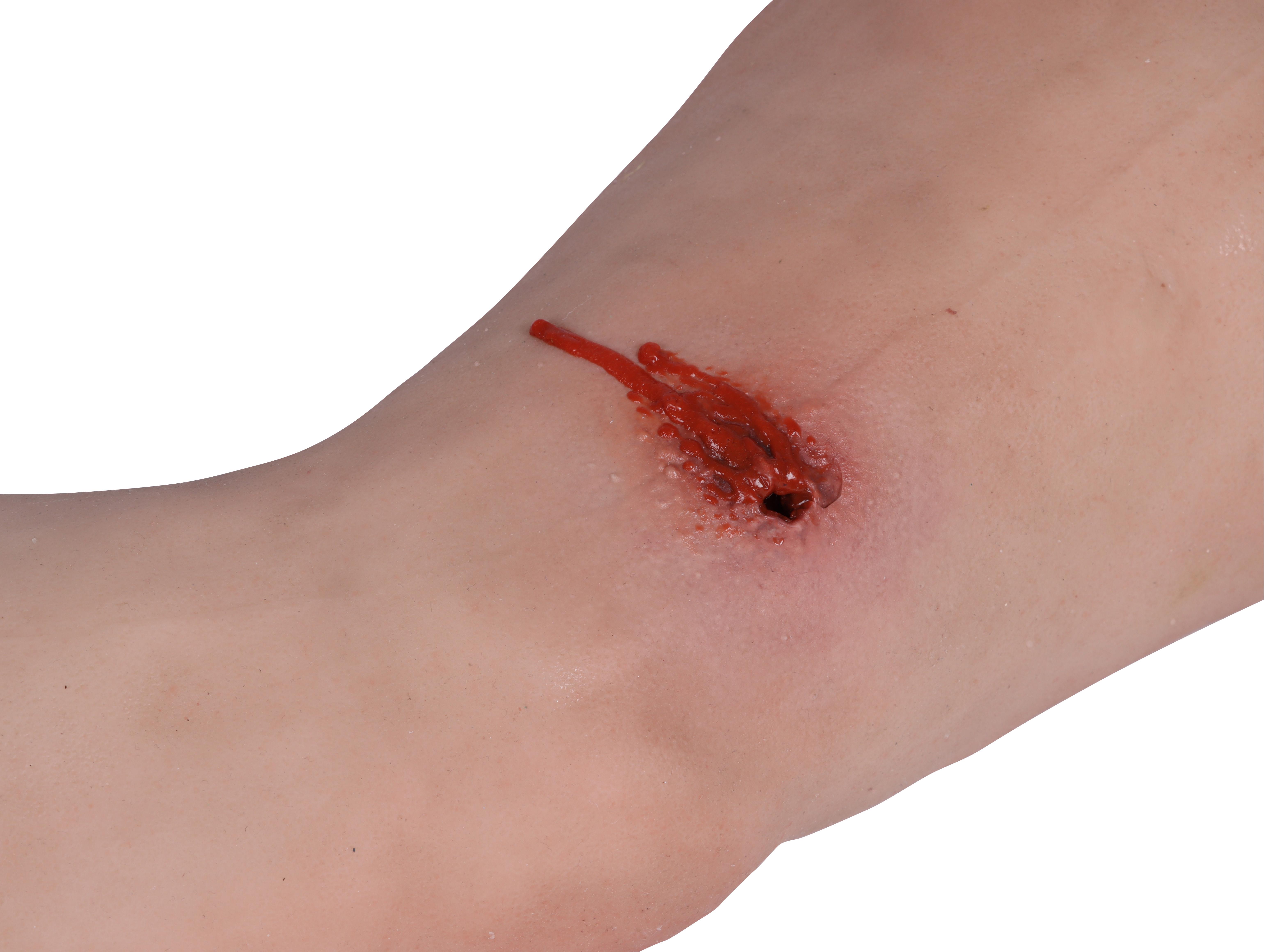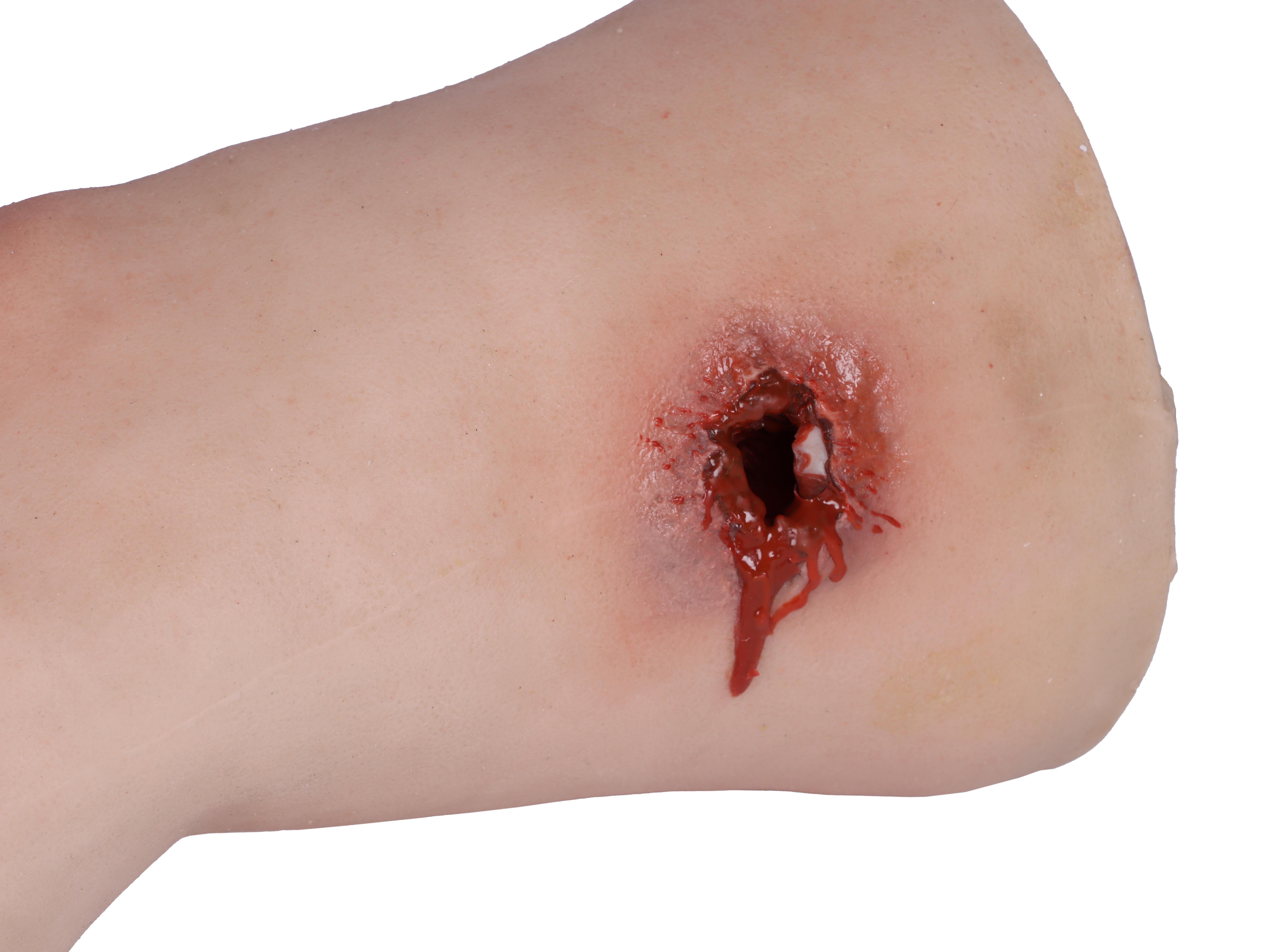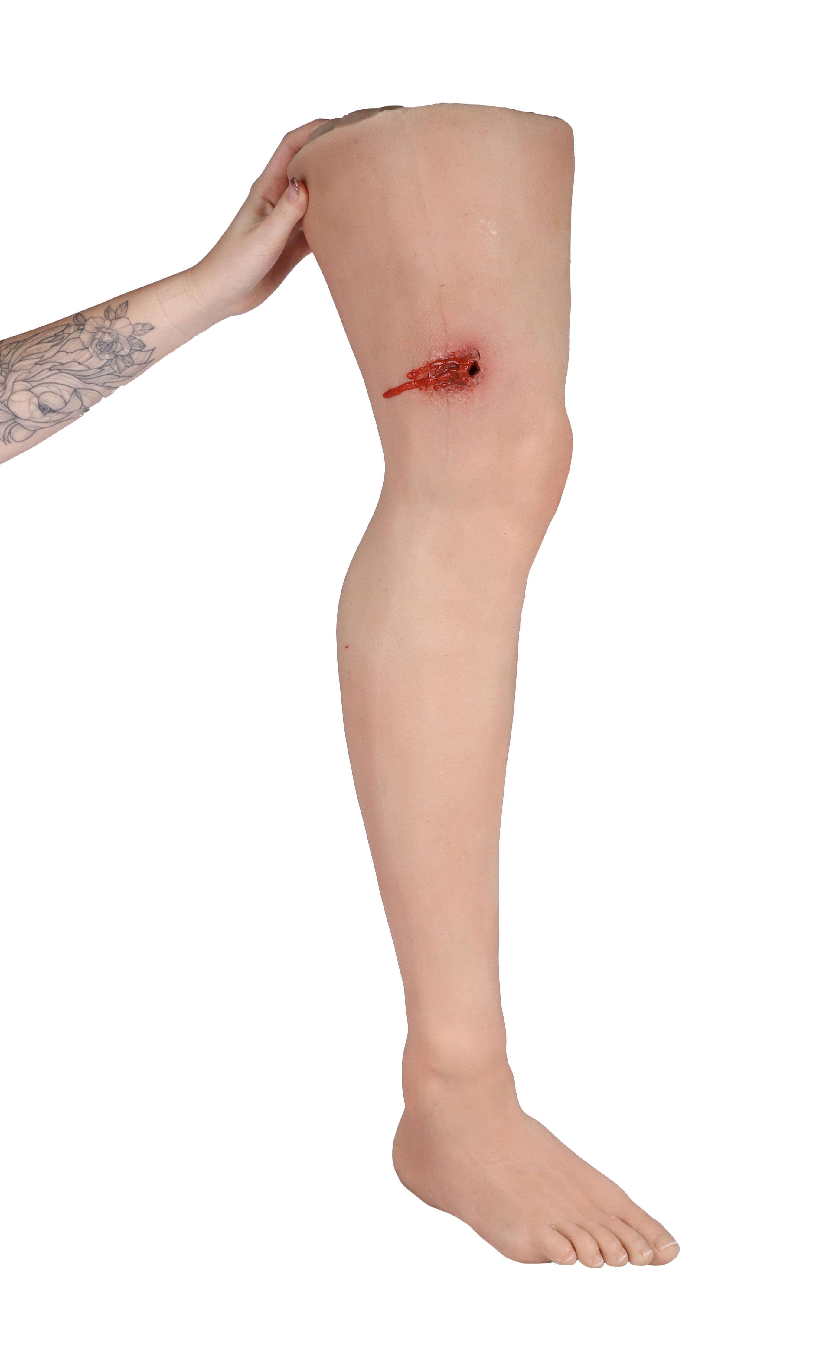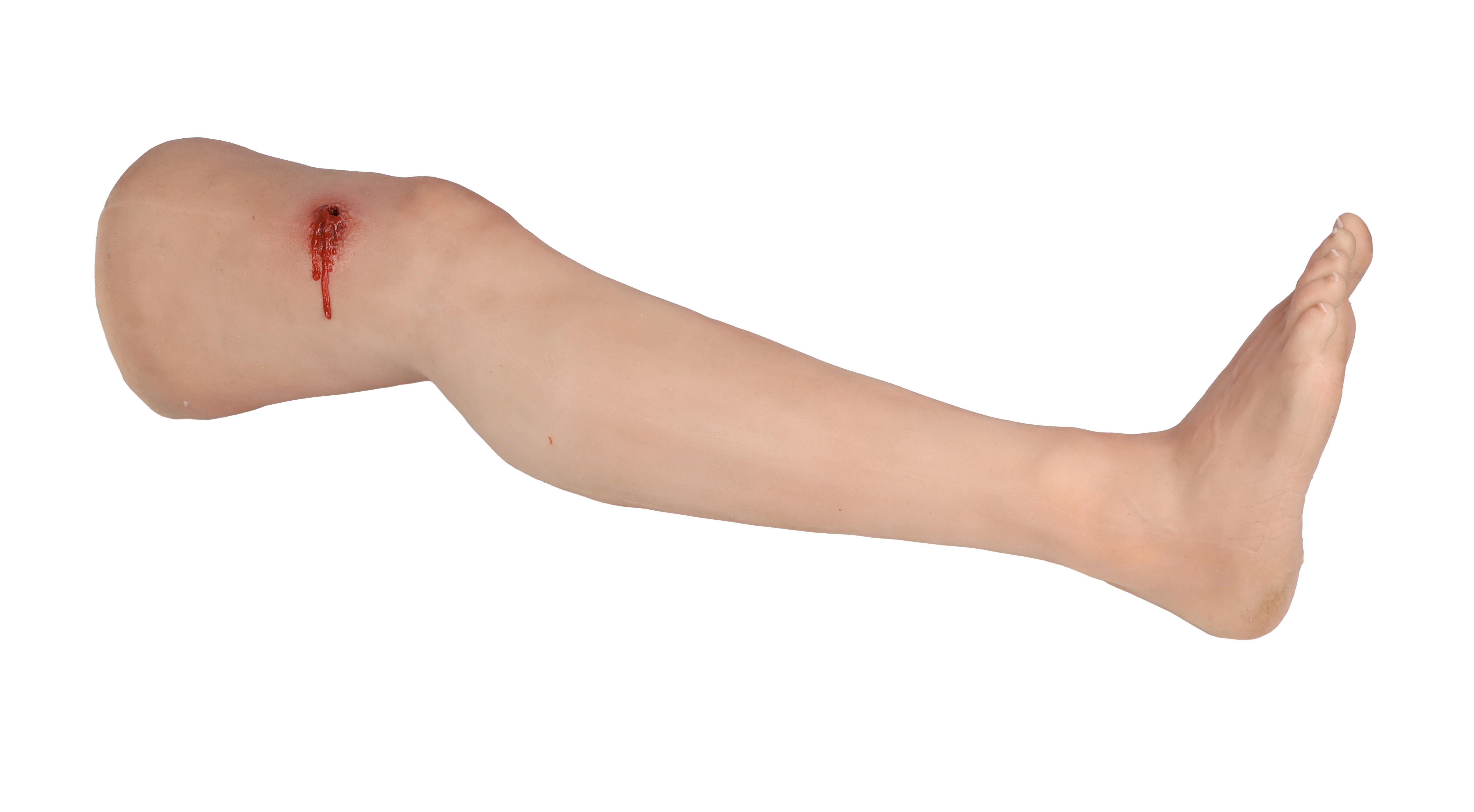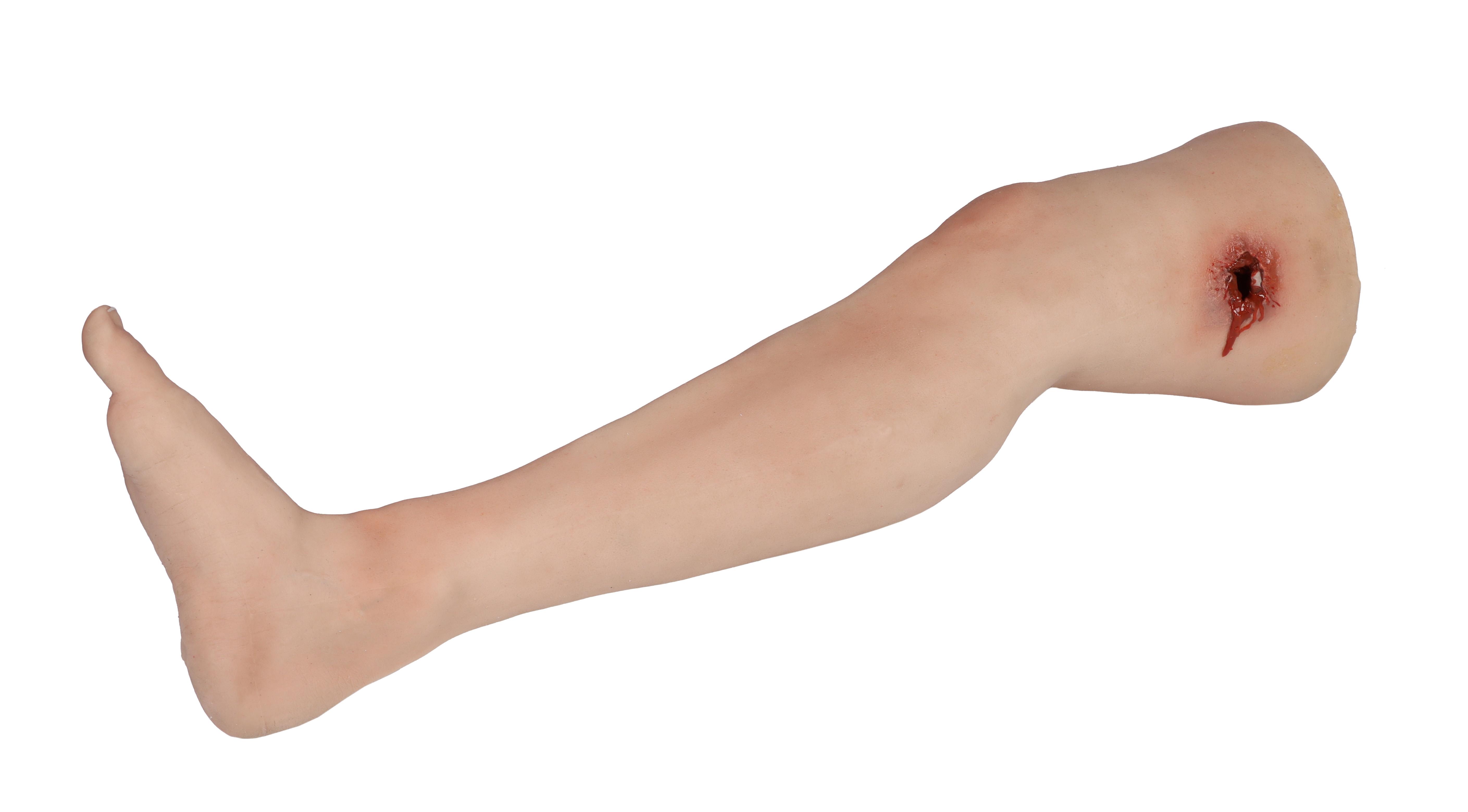 Odlitek skutečné lidské nohy v životní velikosti vyrobený z měkkého materiálu. Na stehně simulace střelné rány se vstupem a výstupem kulky. Systém pro odvzdušňování a volitelné odvzdušňovací zařízení umožňují realistické krvácení rány. Krvácení lze zastavit tamponováním rány nebo správným použitím škrtidla.
