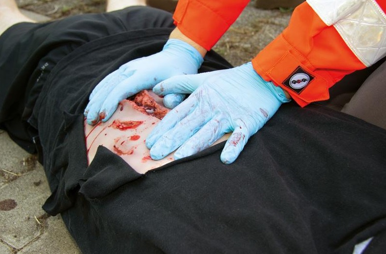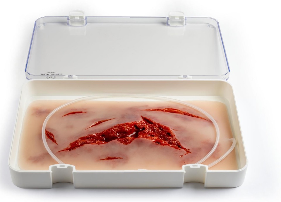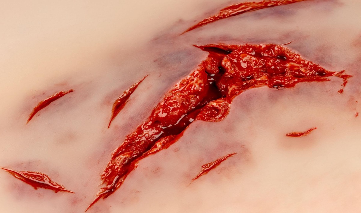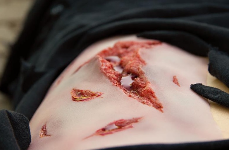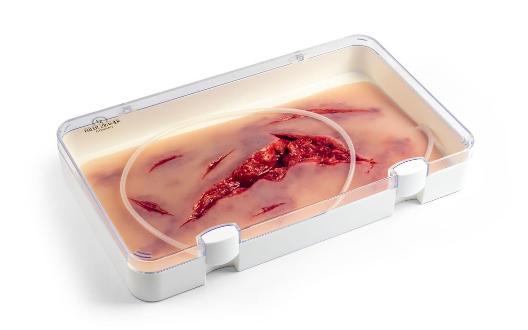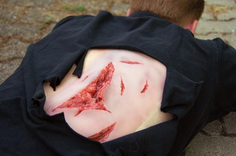 Imitace poranění - velká tržné rány s možností krvácení. Poranění má přívodní cévu s přípojkou pro krvácivý systém. Imitace rány je samolepicí, lze ji nalepit na figurínu i na lidskou kůži. Ránu lze také aplikovat pomocí lepidla na kůži, ale pak muláž ztratí své samolepicí vlastnosti. Baleno v plastovém boxu.