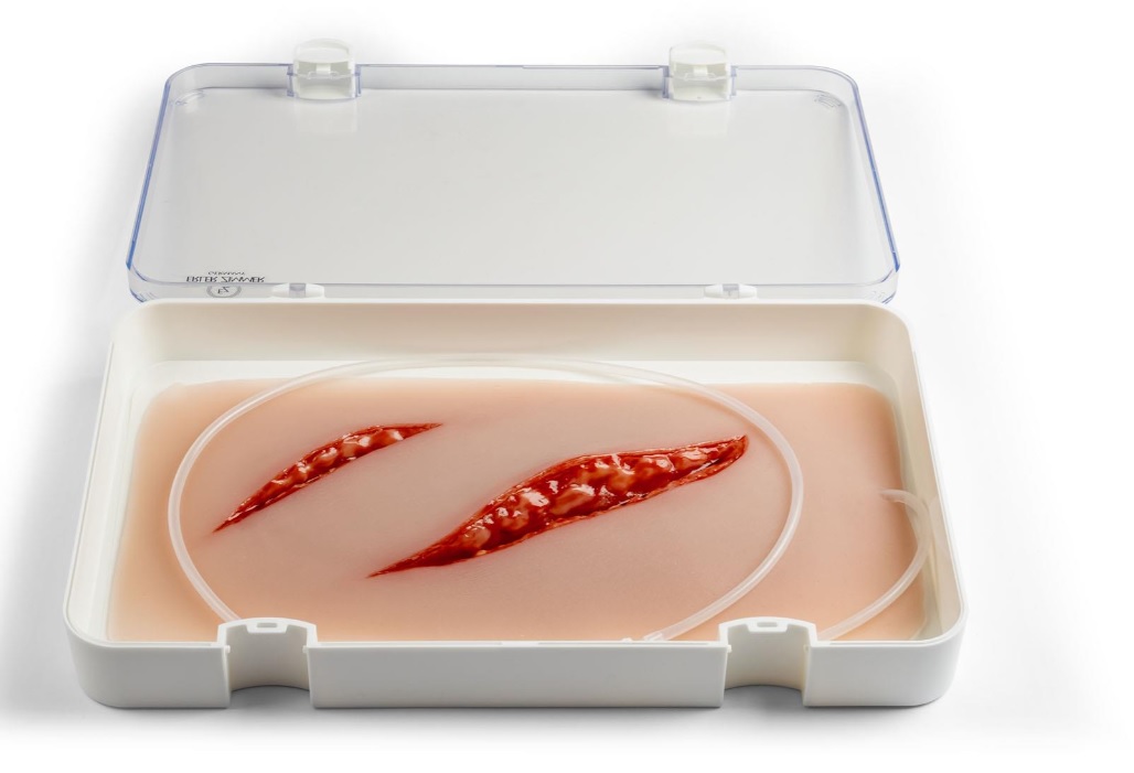 Tato silikonová imitace poranění představuje hluboké řezné rány. Poranění má přívodní cévu s přípojkou pro krvácivý systém. Imitace rány je samolepicí, lze ji nalepit na figurínu i na lidskou kůži. Ránu lze také aplikovat pomocí lepidla na kůži, ale pak muláž ztratí své samolepicí vlastnosti. Baleno v plastovém boxu.