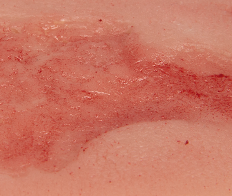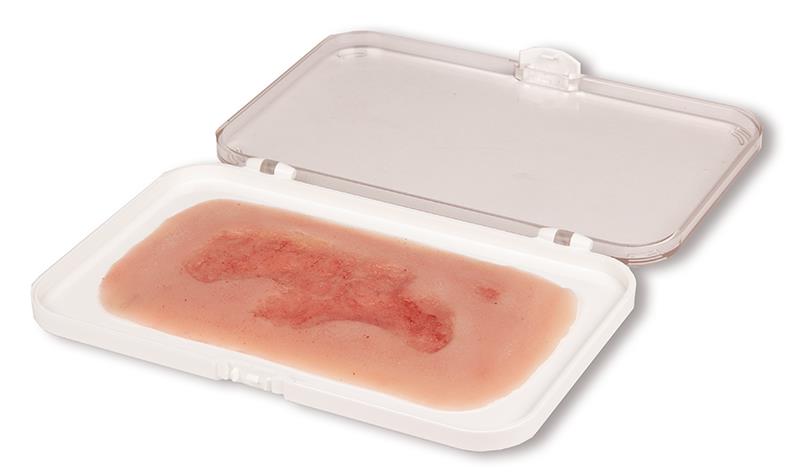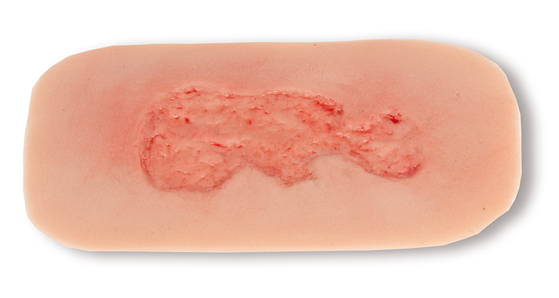 Tato samopřiléhající rána představuje žilní bércový vřed, defekt substance v tkáni dolní končetiny v důsledku chronické žilní nedostatečnosti. Zobrazená epitalizační fáze představuje nejčastější vředovou chorobu (60 % až 80 % všech vředových chorob) ve fázi budování epitelové tkáně, která nakonec vede k uzavření rány. Tato malá rána je ideální pro přiložení v oblasti kotníku nebo bérce a přilne sama. Pro delší použití ji lze fixovat speciálním kožním lepidlem. Všechny materiály použité v tomto výrobku jsou dermatologicky nezávadné.