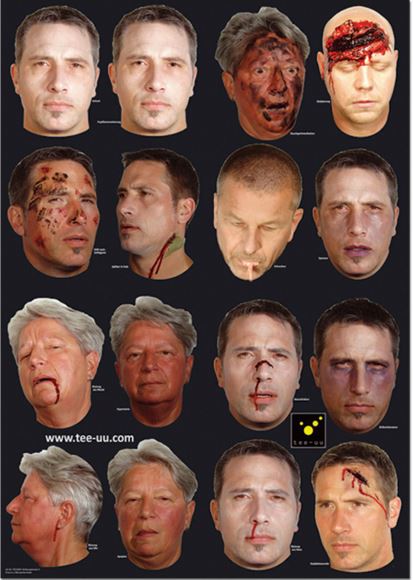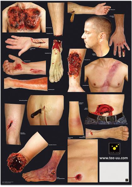 Sada imitací poranění je určená k záchranářské figuríně CRASH & CARRY. Sada se skládá z 36 laminovaných dílů s různými realisticky vyobrazenými zraněními a z jednoho dílu pro individuální označení, např. "reagující", "v bezvědomí" atd.