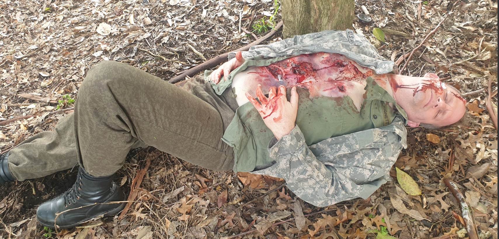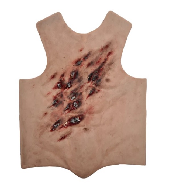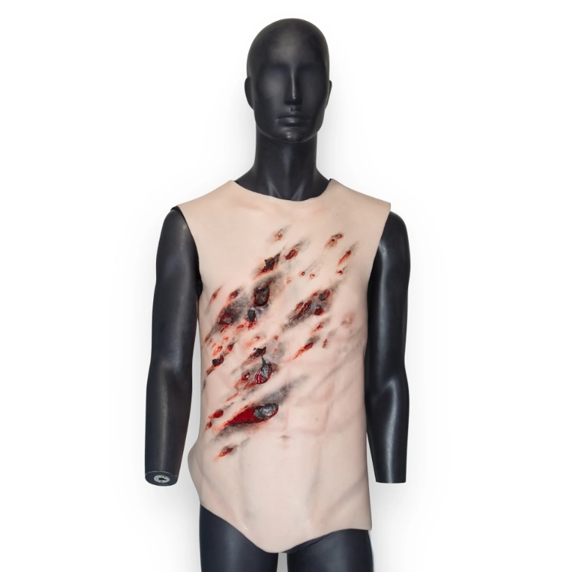 Toto torzo trupu, návlek, je navrženo pro účely simulace traumatického poranění. Může být použito jak na model, tak ho mohou nosit i figuranti. Je vyrobeno z vysoce kvalitního silikonu s podšívkou ze síťoviny ( pro větší pevnost). Tento trup má 4 krvácivé body z 1 hadičky, kterou lze připojit ke krevní pumpě. Úlomky šrapnelu jsou vyrobeny z lakovaného plastu a pro použití jsou bezpečné.