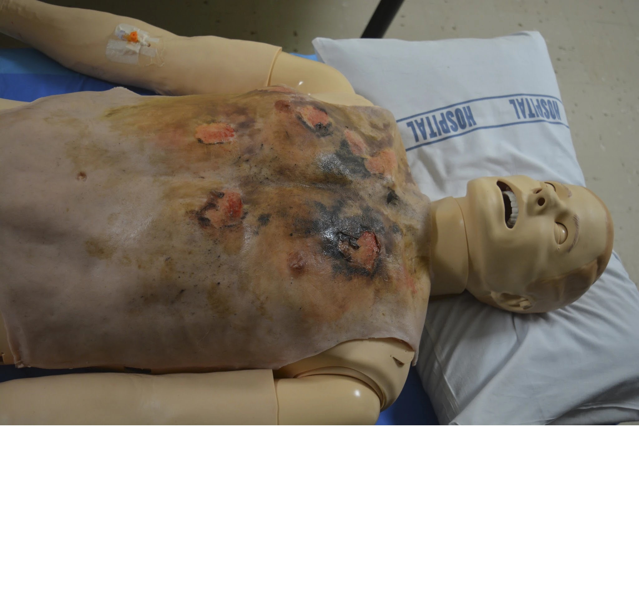Toto torzo je navrženo pro účely simulace traumatu. Může být použito jak na model, tak ho mohou nosit i figuranti. Je vyrobeno z vysoce kvalitního silikonu se síťovinou pro větší pevnost.