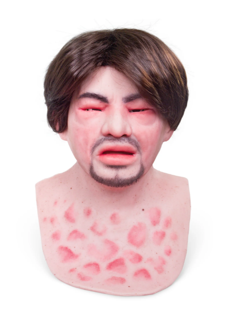 Eduardo je muž ve věku kolem 30 let s otoky kolem očí a úst a vyrážkou na hrudi.