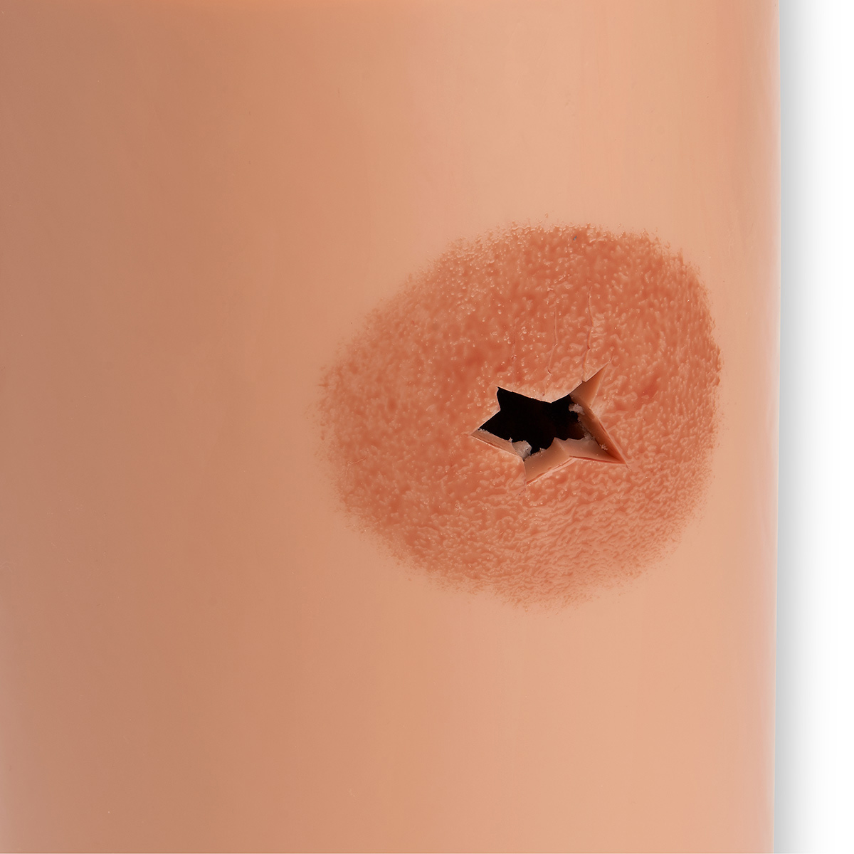 - Efektivní přiblížení stehenní oblasti v kombinaci s poraněním způsobeným nožem a vstupem i výstupem střelné rány 9 mm (celkem obsahuje 3 poranění)
