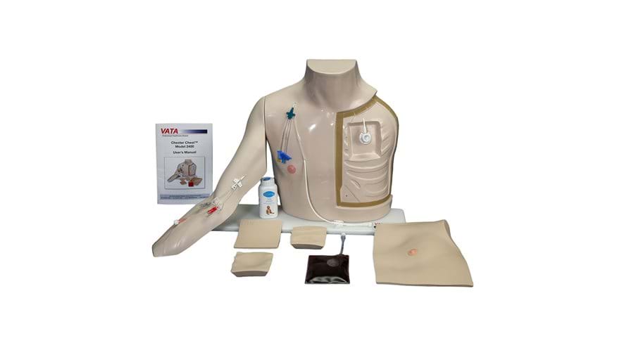 Chester Chest™ umožňuje lékařům, zdravotním sestrám, domácímu zdravotnickému personálu, pacientům a podpůrným osobám rozvíjet kompetence se správou nejběžnějších typů cévních přístupových zařízení v rámci jedné realistické a přenosné tréninkové pomůcky.