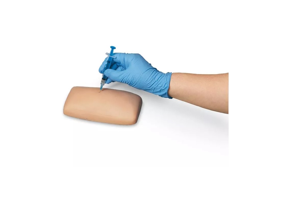 Jednoduchý a snadno použitelný výukový model z měkkého a realistického materiálu pro nácvik intradermální, subkutánní a intramuskulární injekce. Materiál lze opakovaně propichovat, aniž by byly vidět otvory po jehle. Vstřikování tekutin se nedoporučuje.