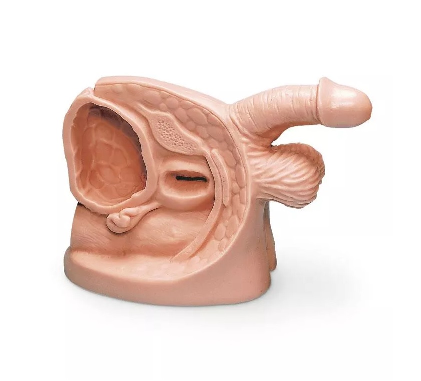 Tento realistický model katetrizace slouží k nácviku správného zavádění namazaného katetru. Může být také použit pro výuku anatomie a techniky sterilní očisty před, během a po zavedení. Anatomie modelu mužského katétru zahrnuje semenný váček, močový měchýř, pánevní kost, prostatu, svěrač močové trubice, ústí močové trubice, penis, šourek, pánevní dno a konečník. Lze použít katétr do maximální velikosti 16 FR. Model je dodáván s návodem k použití, anatomickým schématem a úložným boxem.