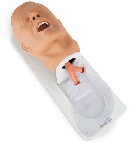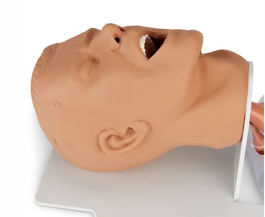Detailní intubační hlava dospělého umístěná na podstavci pro klinickou výuku a nácvik pokročilého zajištění dýchacích cest. Možnost nácviku intubačních postupů a dovedností, nácviku znalostí a rozpoznávání anatomie, nácviku endotracheální intubace, nasotracheální intubace, použití praktických nástrojů jako je laryngeální maska a Combitubus, nácvik zajištění, odsávání a udržování zavedení. Součástí je taška a lubrikant.