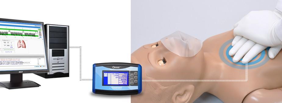- Omni lze připojit k jakémukoliv Vašemu počítači nebo pro maximální mobilitu sledovat provádění KPR na obrazovce jednotky Omni
