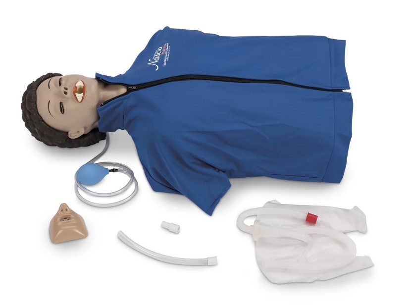 Obsahuje základní trup dospělého, bundu s krátkým rukávem, hygienickou obličejovou masku, jednorázové dolní dýchací cesty, jednorázové tracheální dýchací cesty a bílou armaturu.