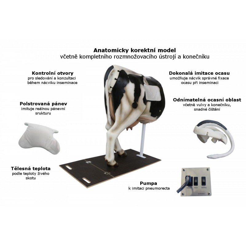 - reálný model krávy holštýnského plemene s gynekologickým traktem