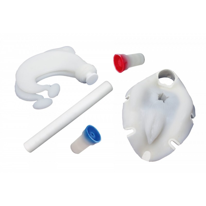 Vnější ústrojí trenažéru tvoří vulva a řitní otvor. Vnitřní části tvoří konečník, pochva, velký a malý děložní čípek, děloha, děložní rohy, vaječníky a část střeva, které se při nácviku nafoukne.