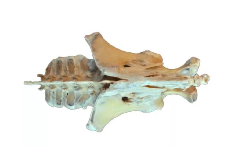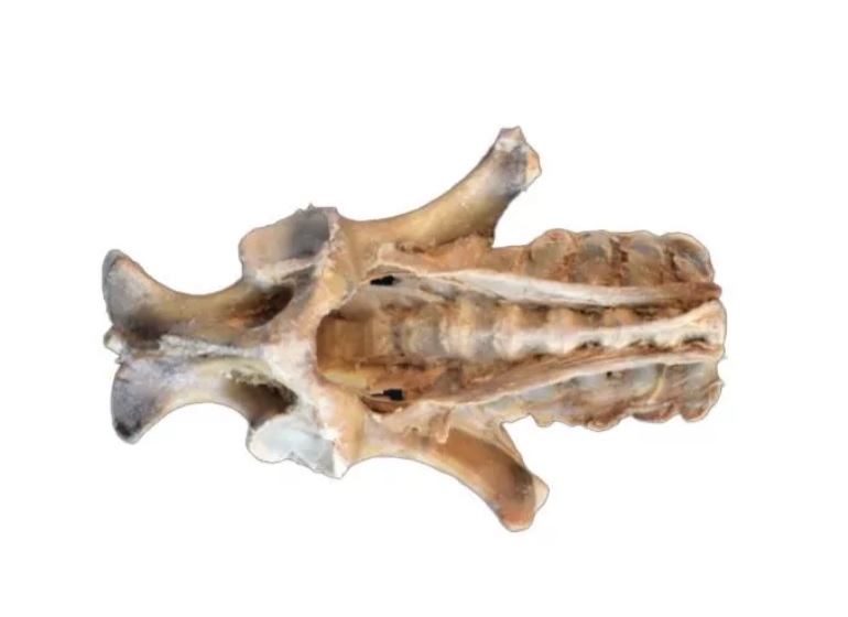 Model je zaměřen na sakroiliakální kloub, při pitvě jsou obnaženy obě koxální kosti (os coxae): Ilium, pubis a ischium, spolu s bederními obratli a křížovou kostí. V sakroiliakálním kloubu lze identifikovat dorzální sakroiliakální vaz. Široký sakrokyčelní vaz v pánvi se táhne od laterálního křížového hřebene k sedacímu svalu a sedací kosti. Široký sakrotuberózní vaz pánve se táhne od laterálního hřebene kosti křížové až k sedacímu svalu.Ventrální podélný vaz spojuje ventrální stranu většiny kraniálních těl bederních obratlů.