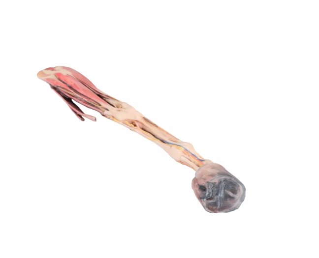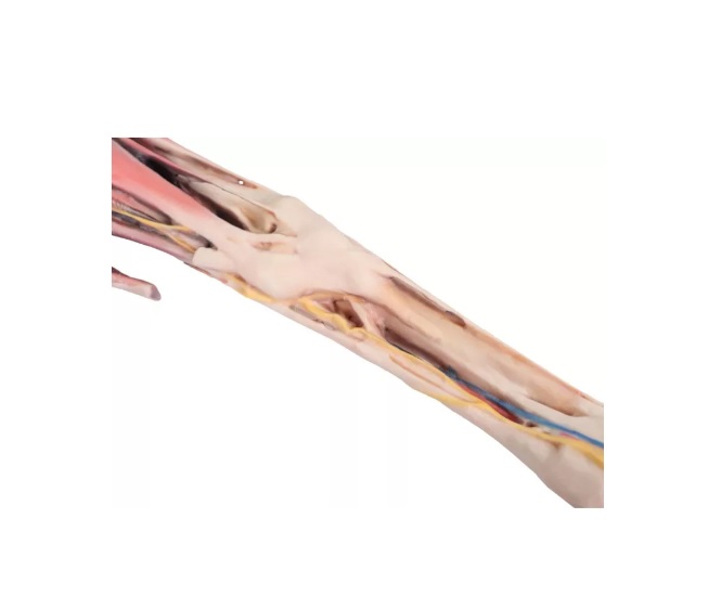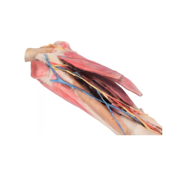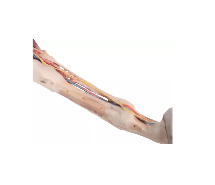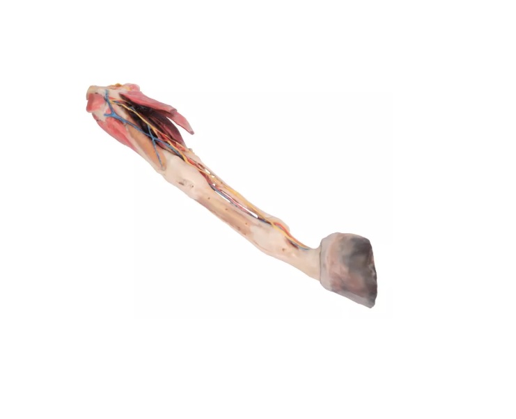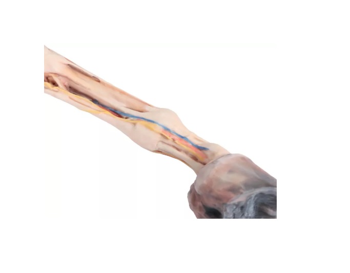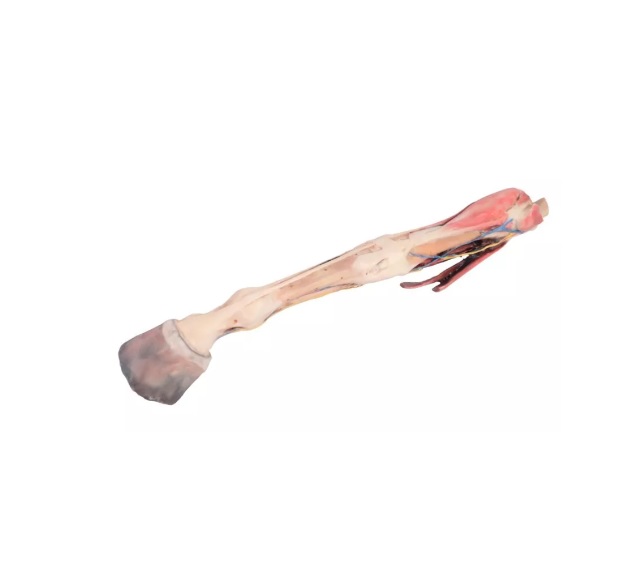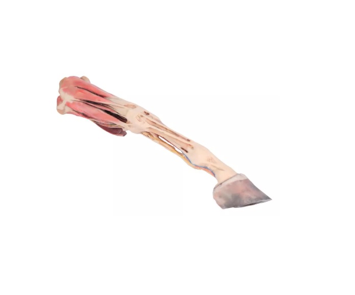 Model demonstruje povrchovou anatomii pravé přední končetiny koně od loketního kloubu po kopyto. V předloktí se nacházejí svaly karpu, extenzory a flexory související s dráhou středového a kubitálního nervu. Hlavní větve arteria mediana a vény mediana a cephalis jsou zachovány. Distálně od metakarpofalangeálního kloubu je možné vidět na obou stranách palmární nervově-cévní svazek.