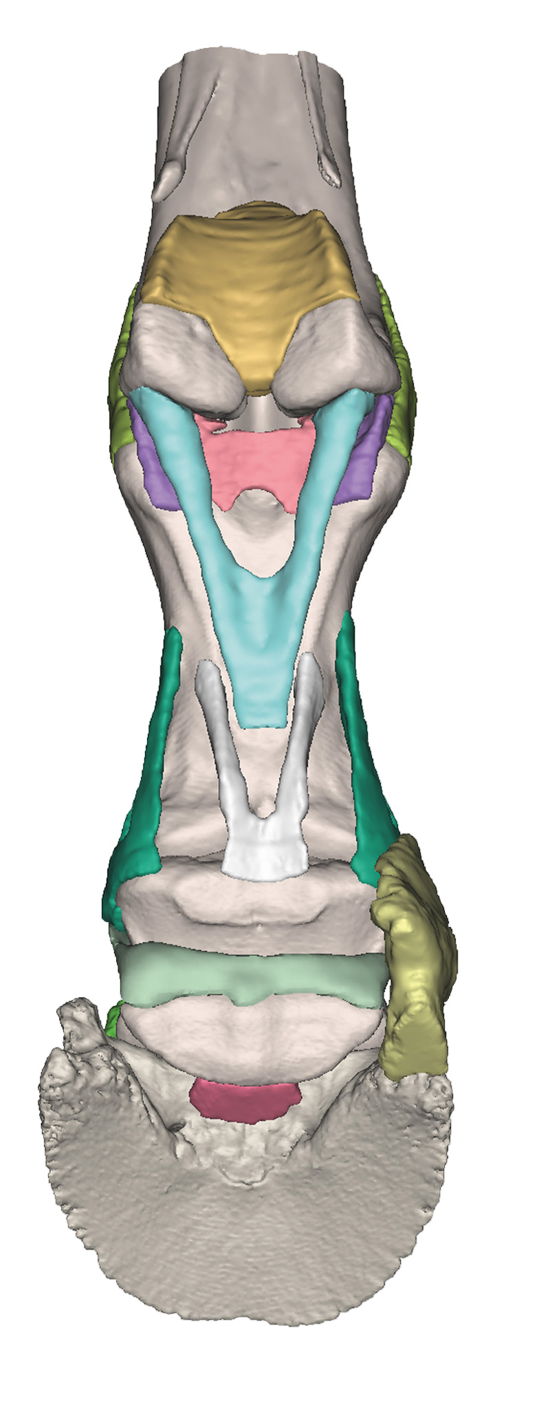 Tento model nohy koně je anatomicky přesný, vychází z dat CT a MR snímků, v životní velikosti. Jedná se o 3D tisk v plných barvách. Každá anatomická součást je individuálně barevná. Kopyto je k dispozici samostatně (EM270-VET4400-1).