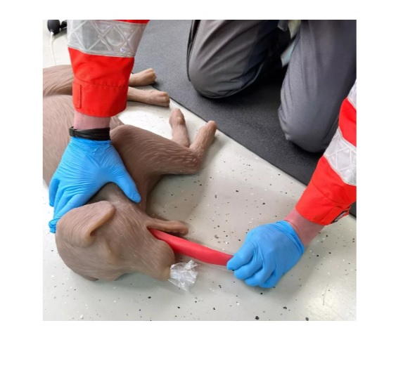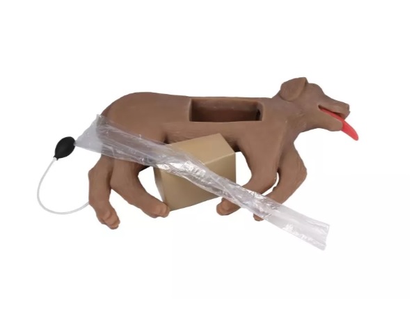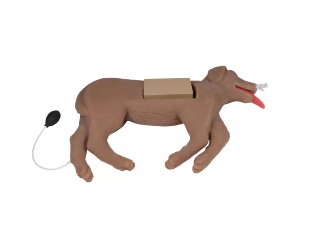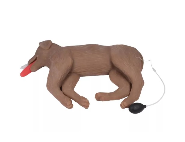 Figurína psa ,,CooPer,, je určena pro trénink studentů a účastníků veterinárních kurzů a umožňuje naučit se provádět kardiopulmonální resuscitaci (KPR) u psů. S modelem,, CooPeR,, si účastníci výcviku mohou v kontrolovaném prostředí procvičovat správné techniky KPR, včetně stlačování hrudníku a umělých vdechů. Tato výcviková příležitost zajišťuje, že veterináři mohou efektivně reagovat v nouzových situacích a potenciálně zachránit život psa. Možná je rovněž manuální kontrola femorálního pulsu. Model CooPeR se dodává se 100 ks náhradních dýchacích vaků a tréninkovou podložkou. Popř. lze dokoupit náhradní vaky ( obj.č. VET4660A).