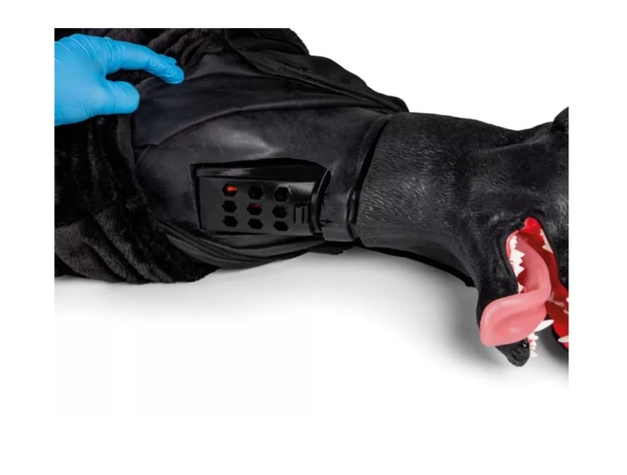 Simulátor asistenčního psa „ K-9 Marshal“ představuje plemeno belgického ovčáka malinoise a odpovídá skutečnému psovi velikostí i hmotností (30 kg), má pohyblivé klouby.