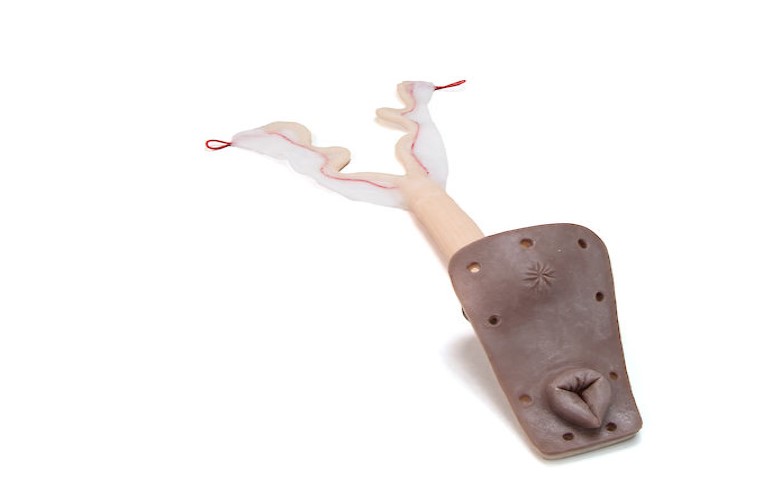 Simulace dělohy feny umožňuje nácvik gynekologického vyšetření pomocí zrcátka nebo endoskopu u naší Gynnie. Umělé oplodnění lze nacvičit balónkovým katetrem nebo endoskopicky řízenou katetrizací děložního čípku. Děloha má detailní sliznici s děložním čípkem.