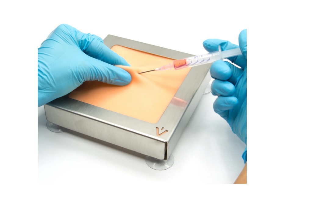 Dvouvrstvá injekční podložka umožňuje realistické zvednutí kožního záhybu – ideální pro nácvik subkutánních injekcí. Podložka je opakovaně použitelná, odolná proti roztržení a zachovává si svůj tvar a texturu. Držák podložky zajišťuje stabilní fixaci a maximální flexibilitu při každodenním tréninku. Podložka je opakovaně použitelná.