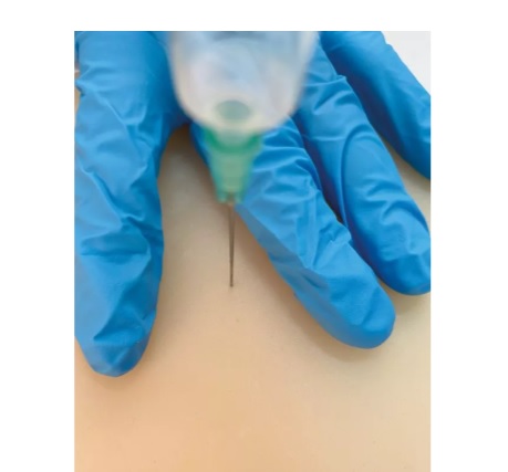 Na této dvouvrstvé podložce lze prakticky trénovat intramuskulární injekce. Realistický povrch kůže simuluje svou strukturou a pocitem měkkou kůži psa nebo kočky. Na podložku lze aplikovat menší objemy injekcí a trénovat různé úhly a hloubky vpichu. Povrch podobný kůži se po injekci uzavře a umožňuje opakované použití. Tento trenažér se dodává s podložkou se čtyřmi přísavkami pro bezpečné přilnutí na desku stolu.