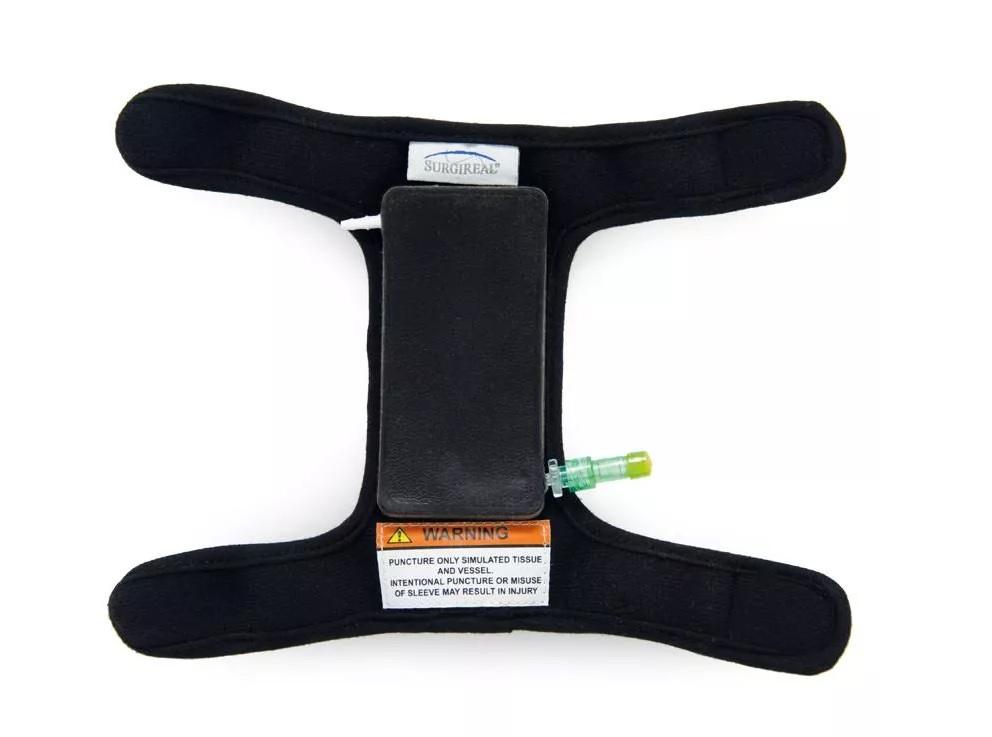 Tréninkový návlek na nohu psa (kočky) pro cévní přístup je vyroben z vysoce kvalitního a odolného silikonu a je speciálně navržen pro odběr krve a zavedení katétru o průměru 22 G nebo menšího.Je zajištěn suchým zipem nad a pod simulovanou tkáňovou podložkou Surgireal RealFlow. Tento model umožňuje studentům zlepšit si dovednosti: připevnění návleku k figuríně, připevnění návleku k nehybnému zvířeti, připevnění návleku k pohybujícímu se zvířeti.