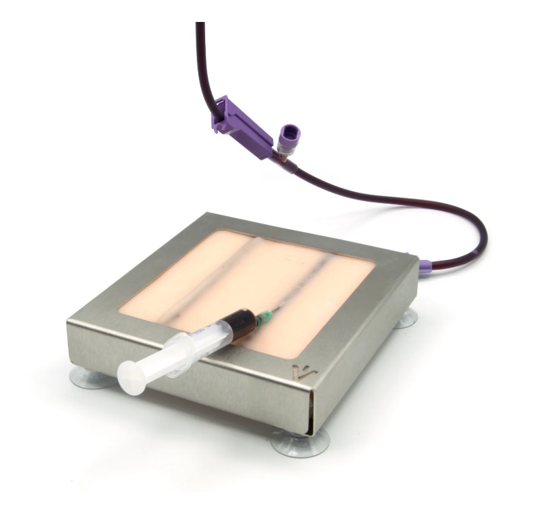 Dvě integrované žíly umožňují realistický nácvik odběru krve, intravenózní injekce a zavedení katétru – s polohováním a hmatovou zpětnou vazbou.