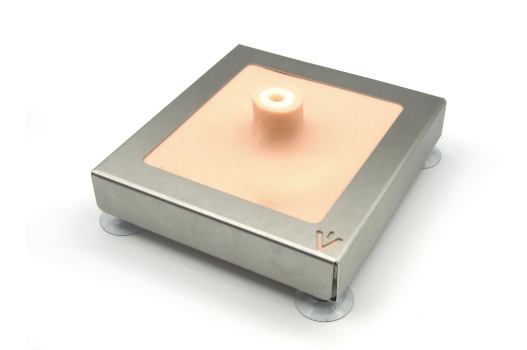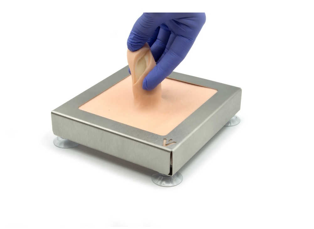 Tento dvouvrstvý model struku krávy lze použít k simulaci různých perforujících nebo povrchových poranění struku a k nácviku uzavírání poranění.