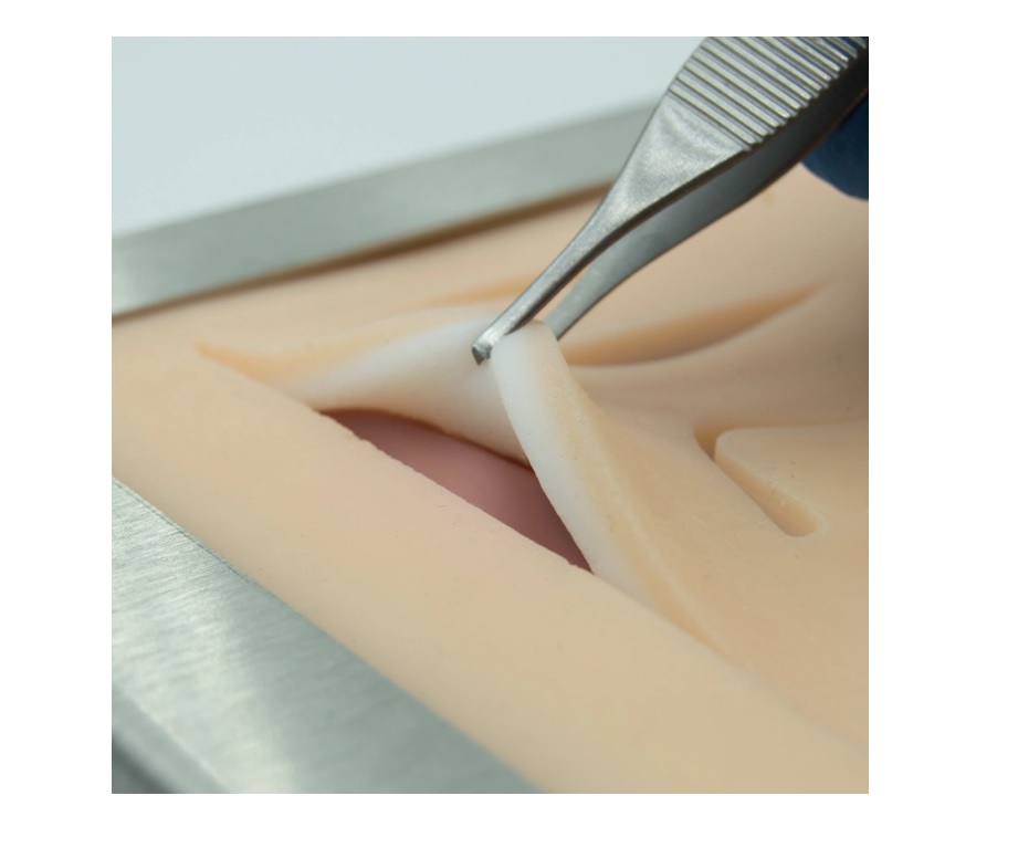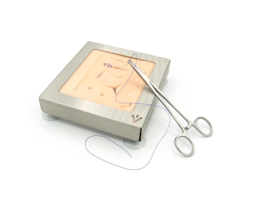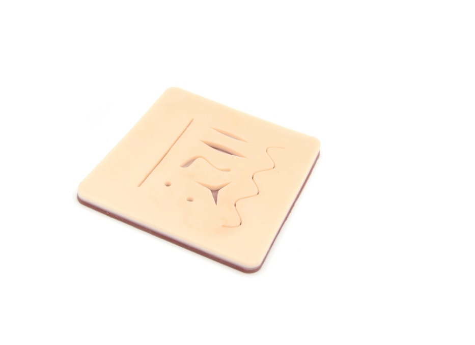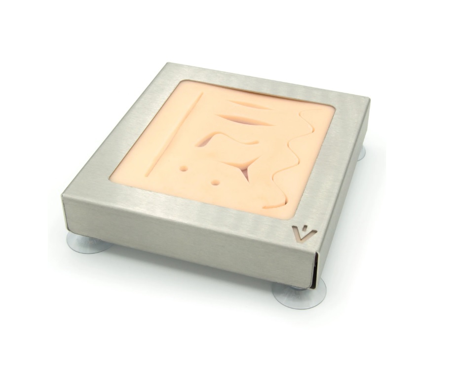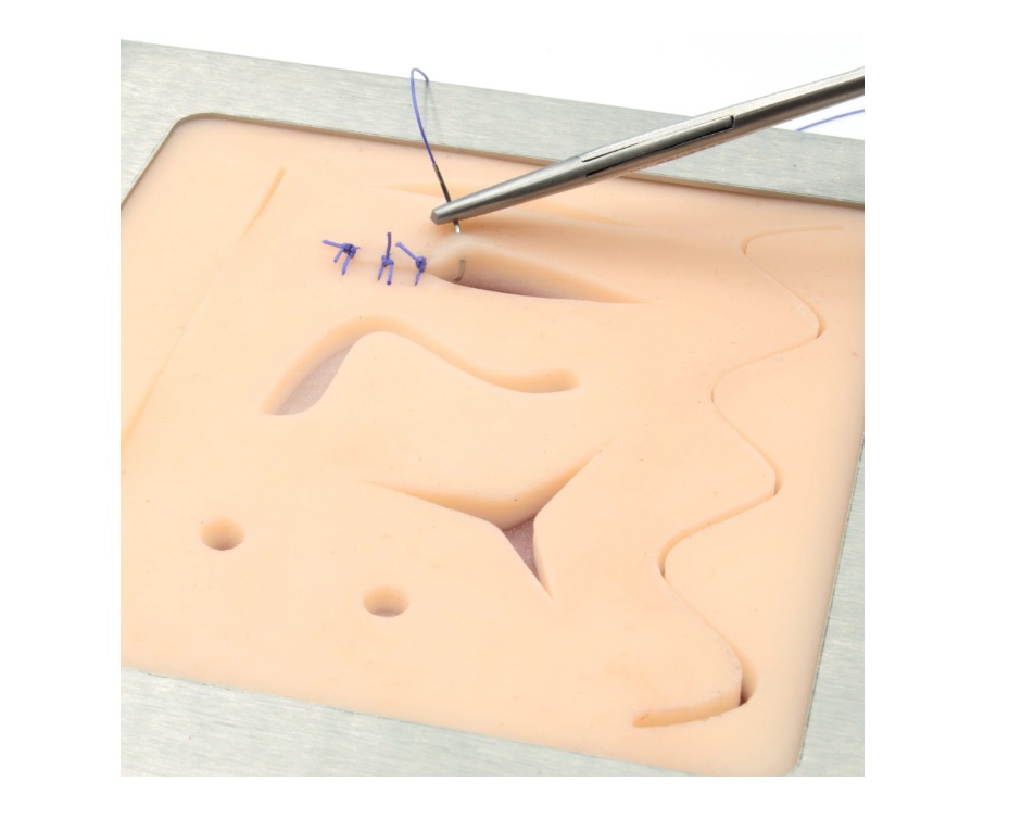 Šicí podložka s výběrem ran různých hloubek nabízí optimální tréninkový základ pro uzavření podkoží a přesnou adaptaci kůže. Cutis, subcutis a muscularis se od sebe liší barvou, což umožňuje nácvik kožních, intrakutánních nebo podkožních stehů. Šicí podložky jsou odolné proti roztržení a zachovávají si svůj tvar a strukturu i po opakovaném použití. Praktický držák podložek (S) lze použít k upevnění šicích podložek ve vertikální nebo horizontální poloze podle potřeby.