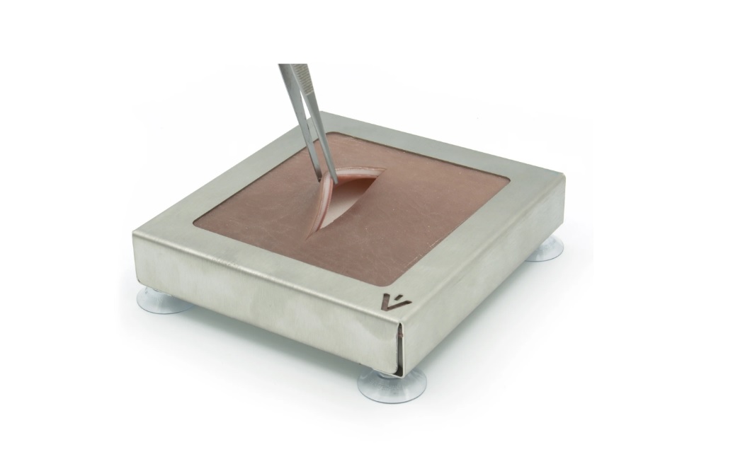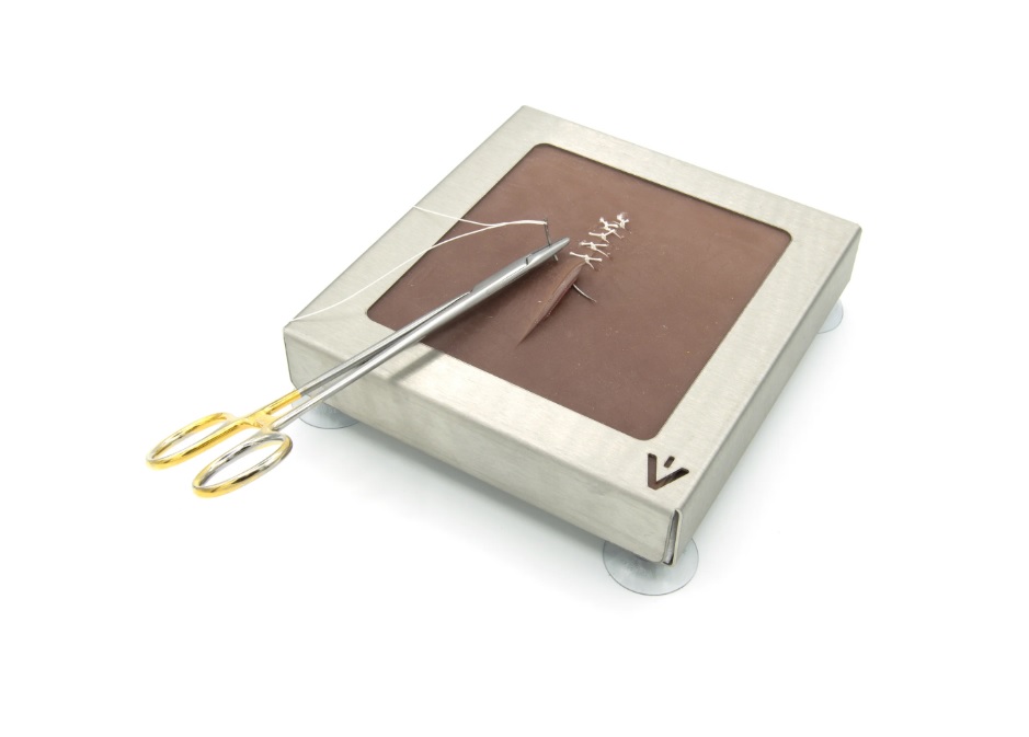 Tato třívrstvá šicí podložka je obzvláště pevná a dokonale napodobuje vlastnosti koňské kůže. Zvláště silná a odolná pokožka umožňuje realistický nácvik řezů, stehů a technik chirurgických uzlů. Vizuální a texturní vymezení mezi kůží a podkožím navíc poskytuje příležitost pro nácvik nitrokožního šití. Šicí podložky jsou opakovaně použitelné, odolné proti roztržení a zachovávají si svůj tvar a strukturu i po opakovaném použití. Praktický držák podložek (S) lze použít k upevnění podložek ve vertikální nebo horizontální poloze podle potřeby.