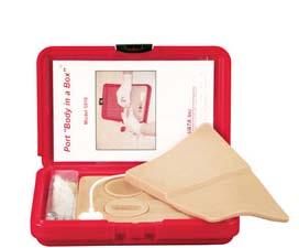 Součástí modelu je reálný port s 9,6 FR katétrem, chlopeň pokožky 18 x 14 cm, blok měkkých tkání se dvěma vyměnitelnými vložkami, zásobník o objemu 35 cm3, jedna 2 cm a jedna 2,5 cm Huberovu jehla, stříkačka Luer Lock o objemu 5 cm3, tři balení lubrikačního gelu, krabička pro uskladnění spotřebního materiálu, uživatelská příručka a pevné ABS pouzdro o rozměrech 24 x 16,5 cm.