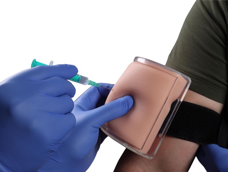 Tuto injekční podložku lze použít jako stolní model i pro upevnění na paži, nohu nebo jiné části těla. Umožňuje naučit se a trénovat intramskulární a subkutánní injekce. Podložka má 3 vrstvy kůže, epidermis, tukovou vrstvu a svalovou vrstvu. Je možné píchnout tekutinu, kterou lze po cvičení jednoduše vytlačit. Podložku lze snadno připnout a zase sundat pomocí pásku na suchý zip.