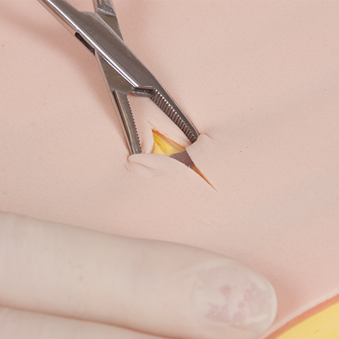 mnohovrstvá podložka s naplněnými žílami pro nácvik postupů preparace žíly, injektáže, inserce kanyly, řezu svrchní vrstvy pokožky