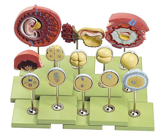 Vývoj do embrya na konci 1. měsíce, 13 modelů na samostatných stojanech