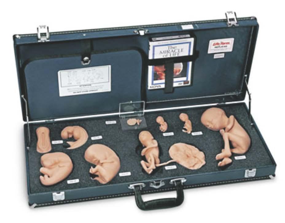 sada obsahuje devět realistických reprodukcí, čtyři modely raného embrya, pět replik rostoucího plodu, DVD Zázrak života a detailní textové a výukové příručky a obrázky (vše v angličtině)