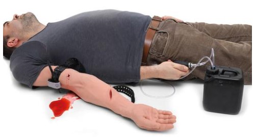Trenažér simuluje celou paži dospělého muže s velmi realistickou vnější anatomií, kůže je vyrobena z vysoce kvalitního odolného silikonu SKINlike™, který simuluje haptiku lidské kůže a tkáně. Obsahuje skeletální orientační body a hmatatelné poškozené cévy/žíly.