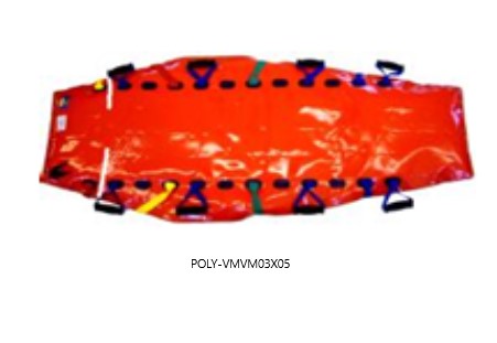 POLY-VM03X05 oddělená fixace hlavy, rozšířená - délka: 200 cm, šířka hlava/střed/nohy: 50–98–50 cm, rukojeť pro přenášení: 8 ks, popruhy pro fixaci pacienta: 4 ks hmotnost: 7 kg